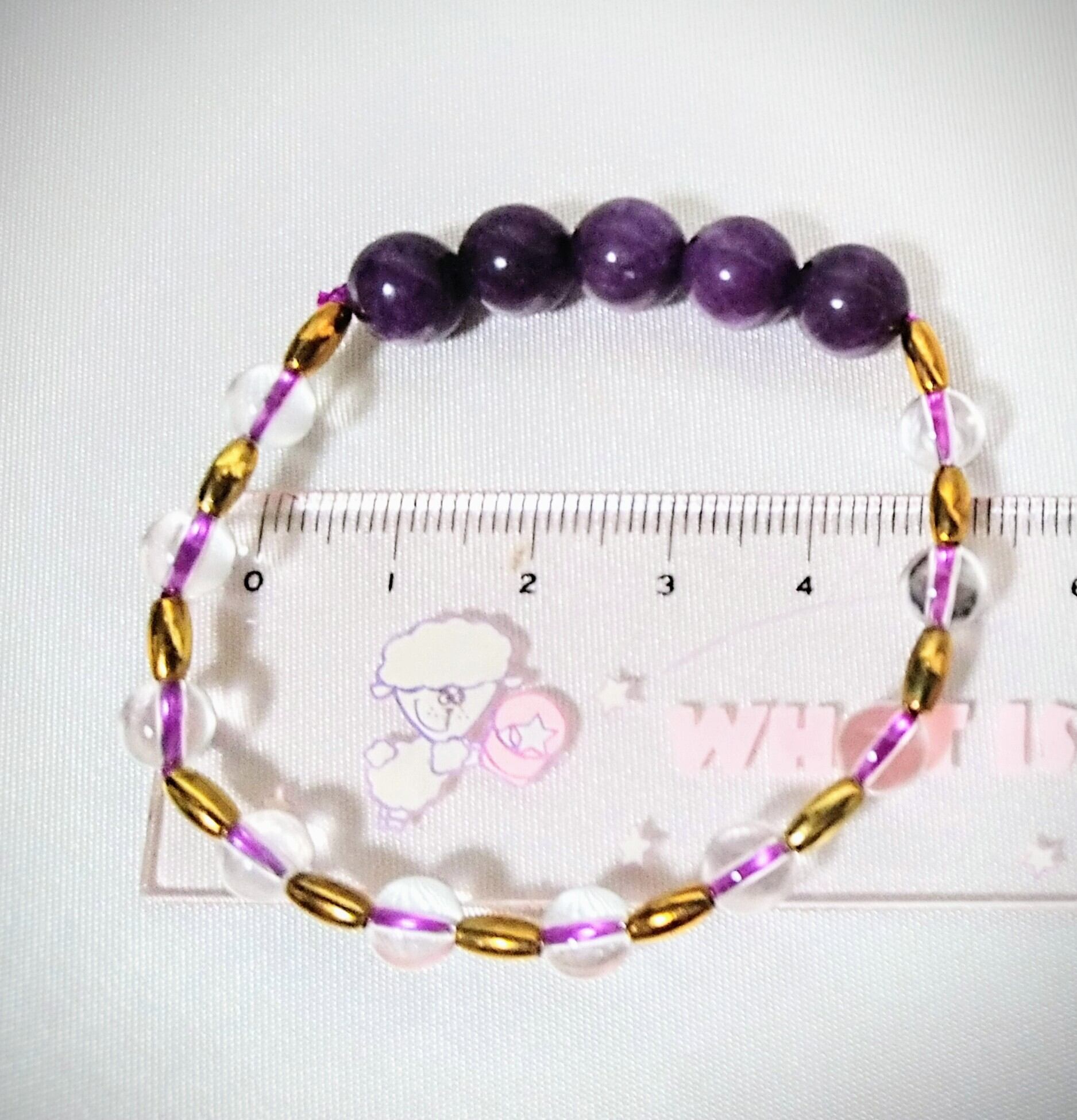 アメジスト8ミリ玉と水晶6ミリ玉のコンビ。楕円ライスビーズを使い、他の作品とはちょっと違った雰囲気に仕上がりました。ネックレスは全長47センチと少々長め。ブレスレットは内径5センチ。水晶から透けた紫色のオペロンが憎いです。紫とゴールドも合いますね。この石は感情をコントロールしてくれる浄化の石。癒しのパワーが強いので心が傷ついてしまっている人におススメ!リラックス効果も有るので枕元に置いて寝るのも良いです‼